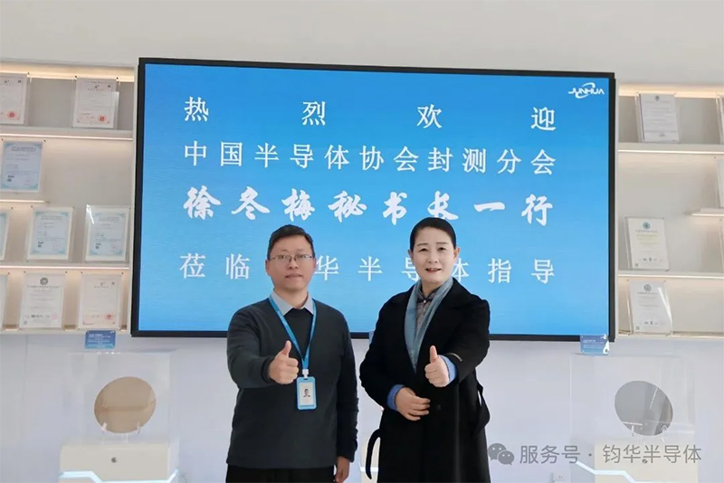 瑞马迎春,万象更新。在马年新春的蓬勃朝气中,中国半导体行业协会副秘书长兼封测分会秘书长徐冬梅女士一行于3月6日莅临钧华半导体考察指导。